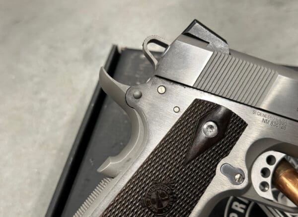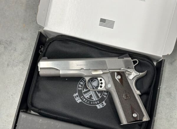 Featuring forged materials and heirloom-quality construction, the Garrison 1911 combines modern materials and design with a heritage spanning over a century. The Garrison is a rock-solid 1911 that gives you a host of modern upgrades along with the strength to provide a lifetime of service. It builds upon that solid foundation with the features today’s shooters demand. Forged construction, low-profile yet high-visibility sights, skeletonized hammer, extended beavertail grip safety and much more define this modern take on the proven classic. The forged frame and slide, the heart and soul of all Springfield Armory 1911 pistols, sets this gun apart. Its checkered thinline wood grips of the Garrison 1911 give shooters an attractive and rock-solid interface with the gun. Providing shooters with a low-profile yet high-visibility sighting system, the three-dots of the Garrison 1911 help ensure you get hits on target. The 5-inch stainless steel barrel on the Garrison is forged from stainless steel and is machined to competition standards.