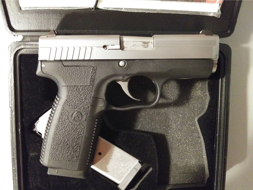 Do you need a lightweight handgun?. The Kahr P45 Handgun found on our online gun store is best described as a lightweight. Handgun .45 caliber pistol which features a textured black polymer frame and a matte. Blackened finished stainless steel slide. This top-selling handgun (Kahr P45 Handgun) has a polymer frame. With special steel inserts that engage. The slide rails for long term durability reliability. And accuracy coupled with 3.5-inch barrel features 1-in-16-inch polygonal rifling. The Kahr P45 Handgun will fit in the palm of an average. Hand only longer than six inches which makes it a good option. If you are looking to buy a lightweight handgun online. With a height of 4.55 inches, the P45 is long enough to get all an average hand on the grip again. Making it a choice to consider if your aim is to buy a lightweight handgun (Kahr P45 Handgun ). The KP4544 matte stainless slide blackened using an ultra-hard and super thin coating. This coating has used in the knife industry to protect. Blades from corrosion and scratches. We have a variety of handguns collections which you can find on. Our online gun store available to ship worldwide.